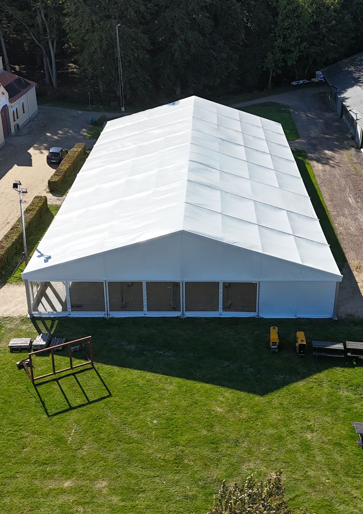 Till Flyinges mässa levererade vi ett 20×45 meter stort eventtält med golv, dörrpartier, ljud, ljus, scen och möbler. En helhetslösning för ett tryggt, proffsigt och vädersäkrat evenemang.