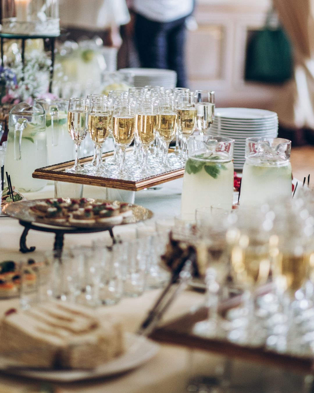 Blanda coupeglas och vanliga champagneglas för att skapa variation på minglet.