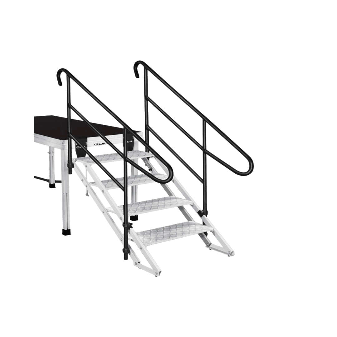 Trapporna är kompatibla med GUIL:s podielösningar och levereras ihopfällda för enkel transport och montering.