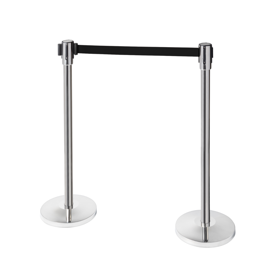 Avdelningsstolpe med rem – Svart är en modern och funktionell lösning för att skapa effektiva kölinjer och avspärrningar vid mässor, event, butiker eller entréer. Den utdragbara svarta remmen dras smidigt mellan stolparna och ger ett rent och professionellt intryck – idealiskt där snabb uppställning och flexibilitet krävs.