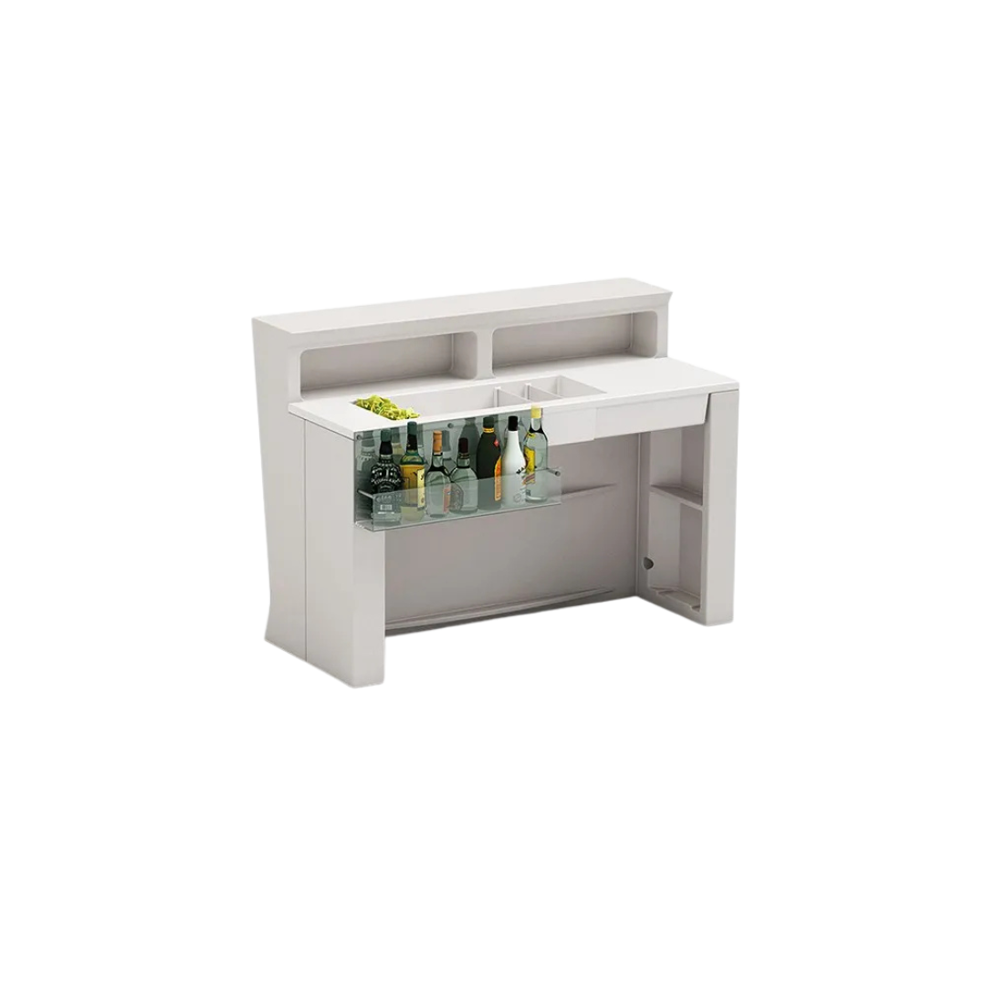 Elegant och stilren vit bardisk – perfekt för mingelyta, barhörna eller serveringsstation på event och fester. En flexibel lösning som ger ett ljust och modernt uttryck.