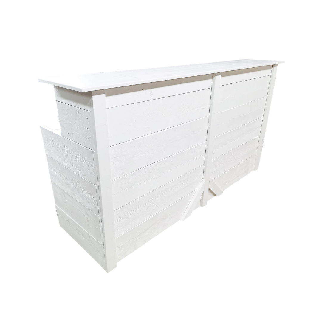 Vit bardisk med modern, ren design – idealisk för barhörnor, mingelytor eller servering vid event och fester. Ger ett stilrent intryck och fungerar lika bra inomhus som utomhus.