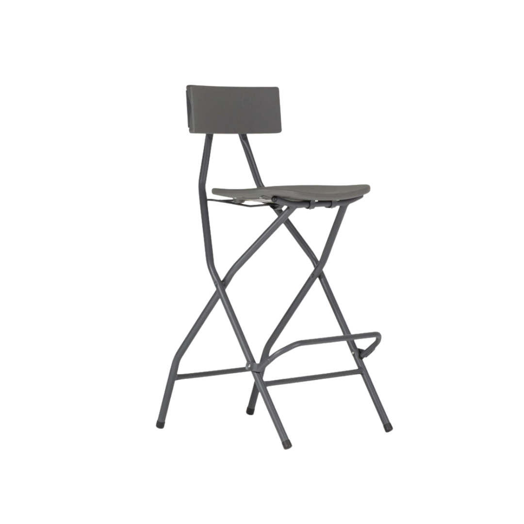 Barstolen i elegant Shark Grey är perfekt för event, barhörnor och mingelytor. Sitsen och ryggstödet i UV‑beständig högdensitetspolyeten vilar på en pulverlackerad stålram – robust och stilren för både inomhus och utomhusbruk.