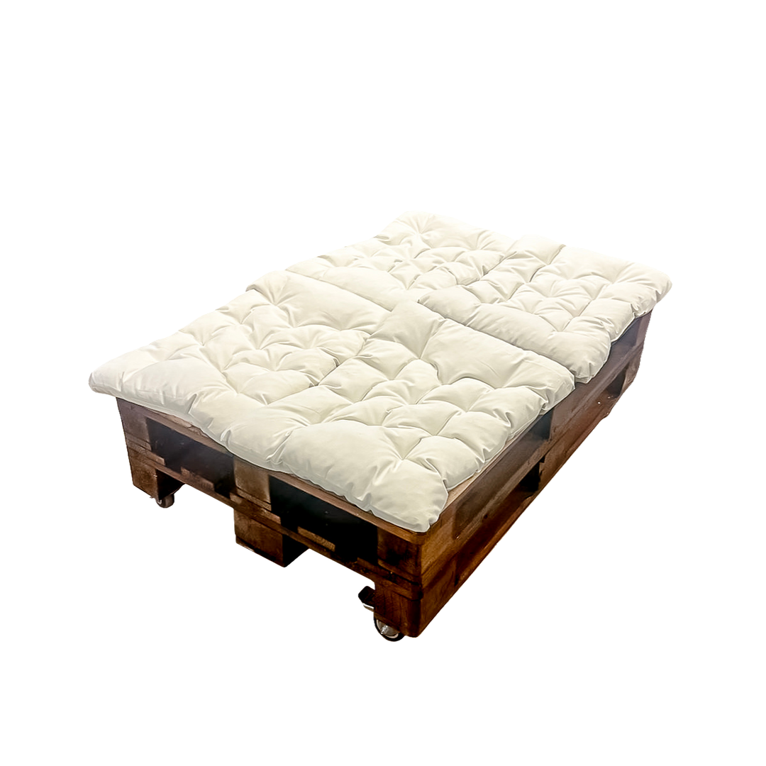 Ge ditt event en stilfull och avslappnad touch med vår EU Pall Bänk – en charmig möbel byggd av två staplade europallar på hjul. Den är lika mycket ett trendigt sittalternativ som ett praktiskt bord och kan enkelt flyttas dit den behövs. Perfekt för både utomhus- och inomhusmiljö – rulla bara in den under tak om vädret skiftar.
