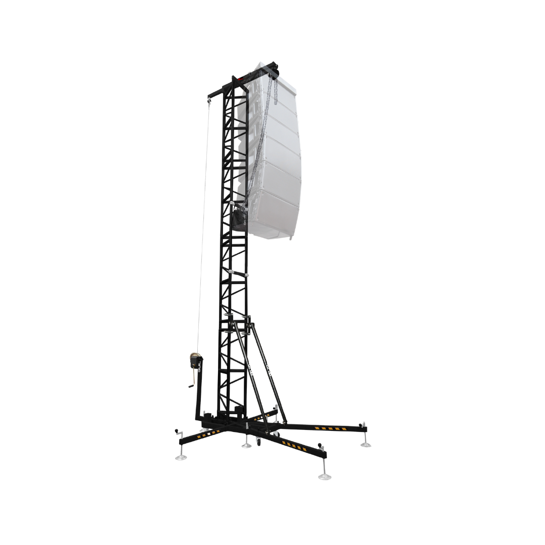 GUIL – Lyfttorn TMD-545 (6,25 m, 500 kg) är ett kraftfullt vevtorn för tunga lyft inom ljus-, ljud- och scendekor vid stora event, konserter och installationer. Tornet klarar upp till 500 kg och når en höjd på hela 6,25 meter, vilket gör det till ett utmärkt val för avancerad riggning där både styrka och räckvidd krävs.