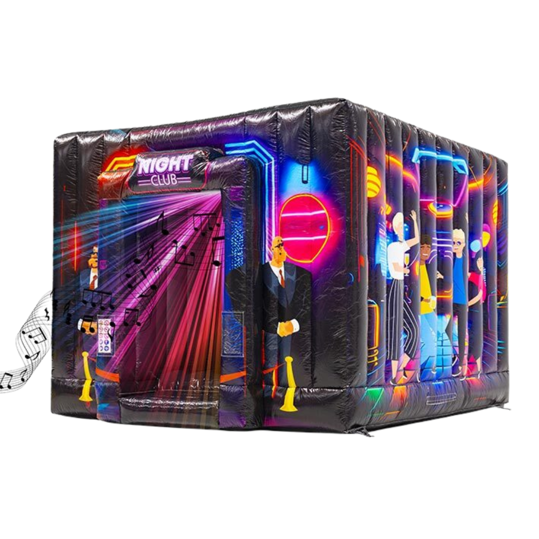 Hoppborg – Disco Castle 27 m² är en färgsprakande och energifylld hoppborg med disko-tema som bjuder in till studs, dans och glädje! Med blinkande färger och festlig design är den ett perfekt inslag på barnkalas, skolaktiviteter, ungdomsevenemang eller festivaler. Den generösa ytan på 27 m² ger plats för massor av rörelse och skratt.