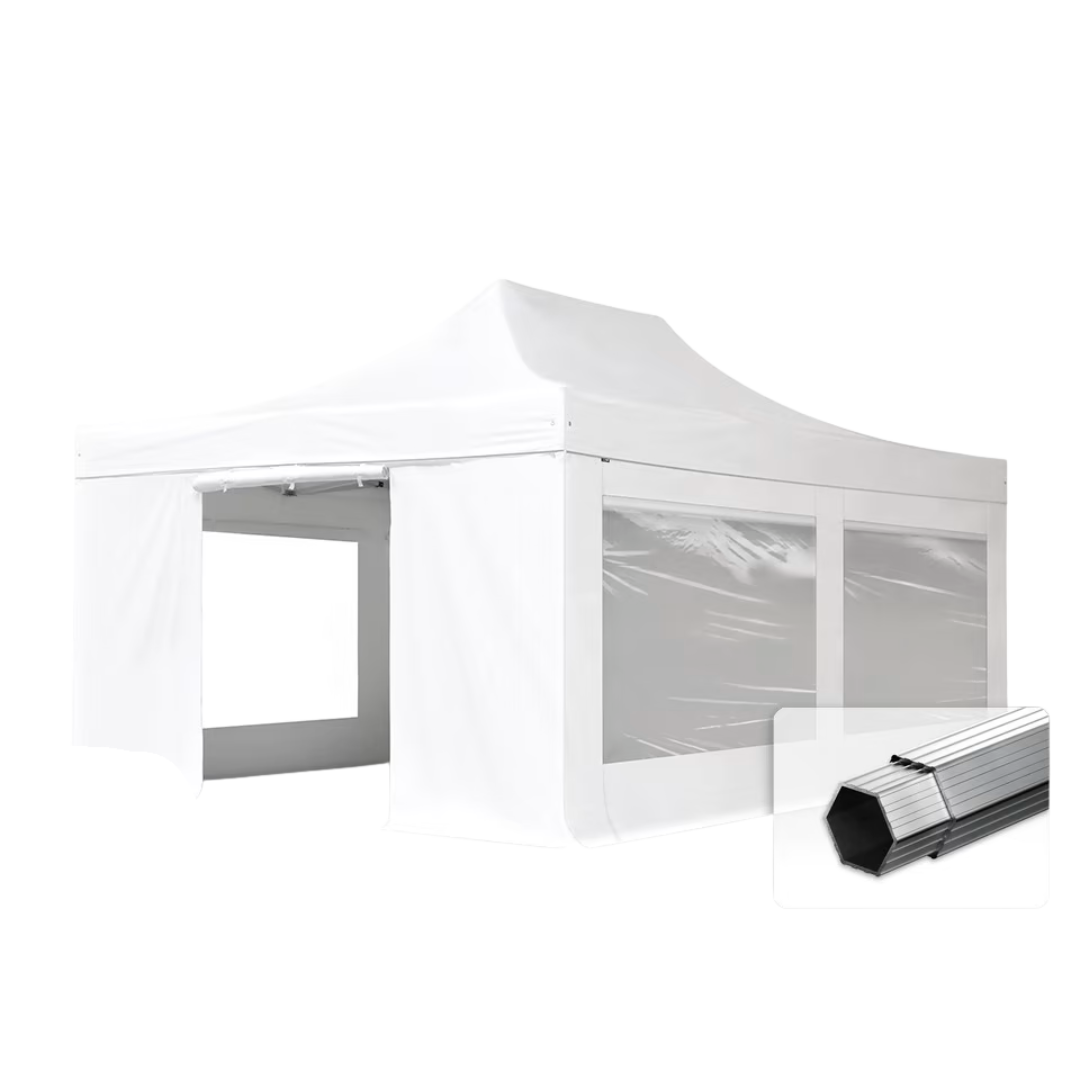 Snabbtält 4x6 m är en smidig och mångsidig tältlösning som passar utmärkt för mindre event, marknadsstånd, entréer eller som skydd för teknik och servering. Med sin enkla uppfällning och robusta konstruktion är det perfekt för arrangörer som behöver ett snabbt och effektivt väderskydd utan krångel.
