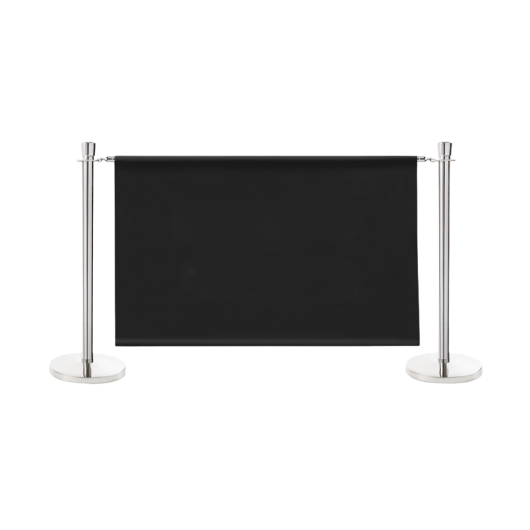 Reklambarriär avdelningsstolpe är en elegant och funktionell avspärrningslösning med plats för branding, budskap eller sponsorloggor. Perfekt för entréer, kölinjer, mässor, VIP-områden eller andra miljöer där du vill kombinera publikstyrning med visuell närvaro. Tygpanelen trycks med valfri design och spänns mellan två avdelningsstolpar i silver.