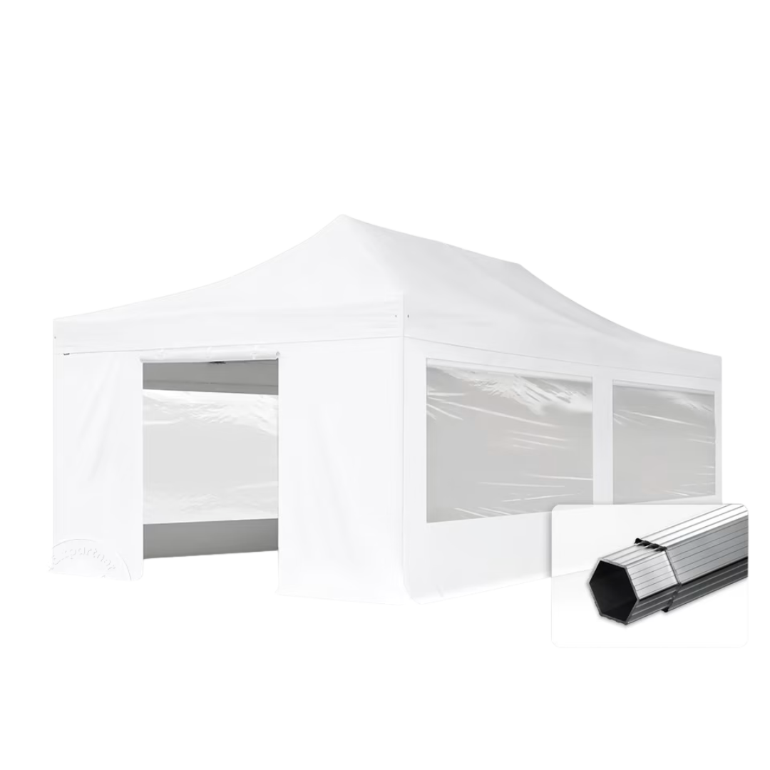 Snabbtält 4x8 m är ett praktiskt och snabbtält för dig som behöver skydd och flexibilitet vid mindre event, marknader, entréer eller som komplement till större tältlösningar. Med sin smidiga konstruktion och rymliga yta fungerar det lika bra för servering, förvaring, utställning eller som väderskydd för gäster och utrustning.